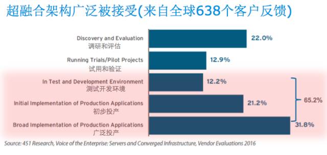 因为软件定义基础设施在企业级IT领域的不断深入,提升了用户对于超融合的接受度,也带动了超融合市场的活跃,为此,超融合受到了全球两大分析机构的肯定,包括来自451Research的全球638个客户调查反馈,超融合和架构已被企业用户广泛接受。这一切表明超融合市场的春天真的来了。